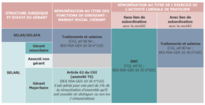 La rémunération globale du dirigeant sera par défaut traitée en BNC. Dans le cas de gérant majoritaire de SELARL, même lorsque la société ne distingue pas dans ses documents la rémunération technique de la rémunération de gérance, la règle sera la même. Le dirigeant pourra néanmoins justifier de l’indissociabilité effective des fonctions afin de conserver le régime de l’article 62, ce qui devrait recouvrir un nombre de situations très restreint.