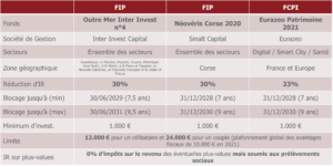 Ce tableau récapitule les caractéristiques des FIP FCPI que l’expertise financière a sélectionnés.