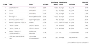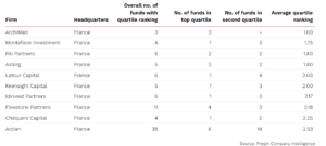Les 10 meilleurs fonds de Private Equity basés en France, classés selon le taux de rendement interne net (IRR) pour la période de 2009 à 2019.